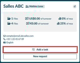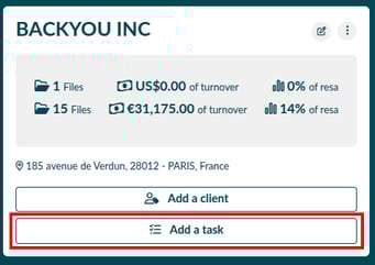 No matter which button is used to create a task, it is always possible to add one or more clients, one or more companies, and one or more files.