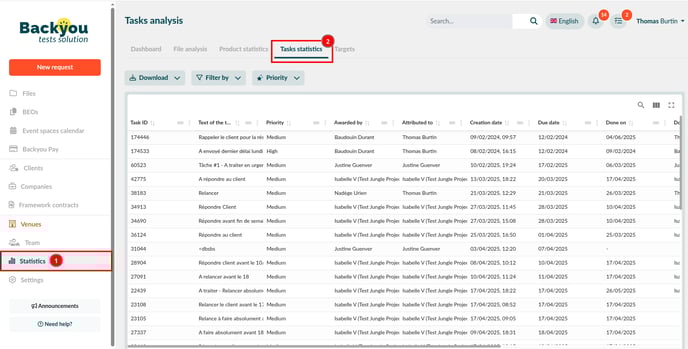 The statistics table allows you to evaluate the volume of tasks completed by each team member, according to each status and period.