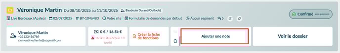 Les notes sont à usage interne exclusif et ne sont pas visibles par le client. Elles permettent de consigner du contexte et des informations spécifiques sur le contact client, les tarifs ou le déroulé de l’évènement.