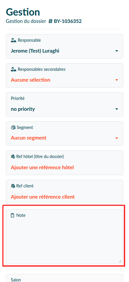 Les notes sur les dossiers permettent de documenter le suivi commercial d'un dossier et éventuellement de communiquer au sein de l'équipe.